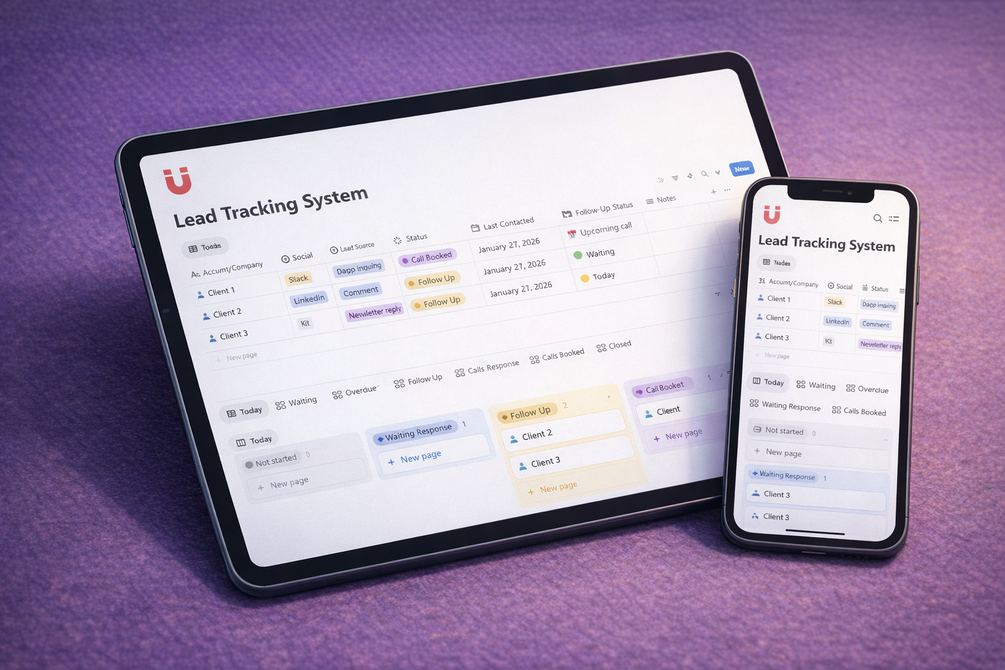 A simple Notion lead tracking system to keep conversations organized and follow-ups visible.