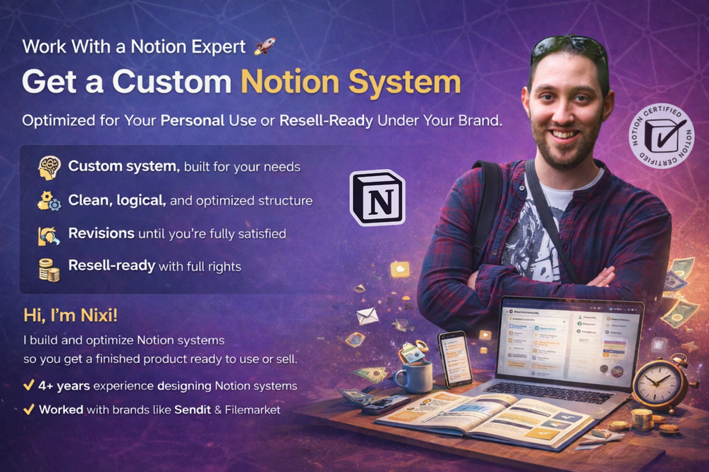 I’m a Notion expert with over 4 years of hands-on experience building systems and digital products.
