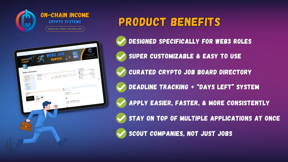 Whether you're searching for your first Web3 role or moving into a better-paying crypto job, this template removes the chaos and gives you a clear, repeatable system.